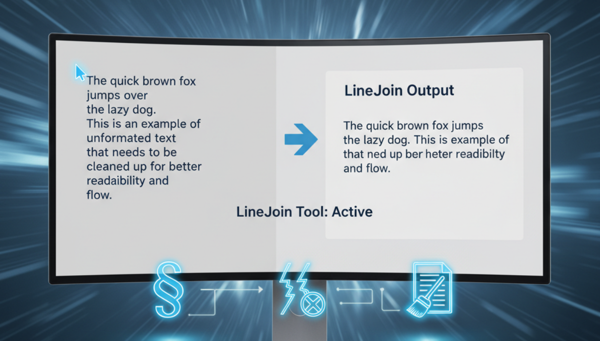 LineJoin is a free online tool that helps you remove unwanted line breaks, carriage returns, and extra spaces from text in seconds. Clean up copied or formatted content instantly and make your text smooth, continuous, and ready for professional use.
